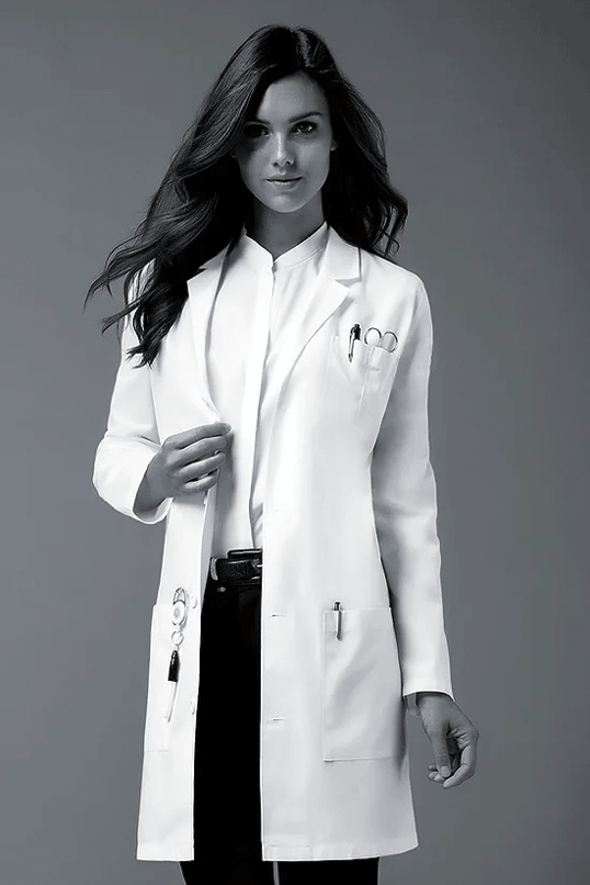 - Length: Lab coat length is typically measured from the center back neckline to the hem.