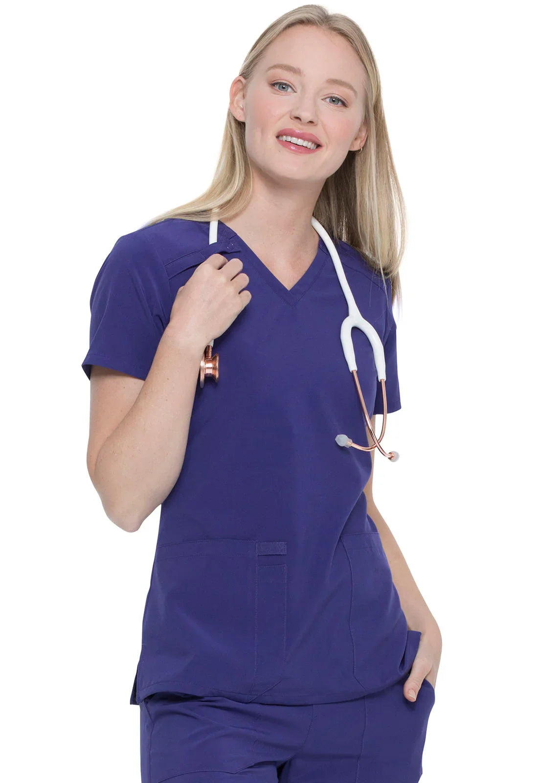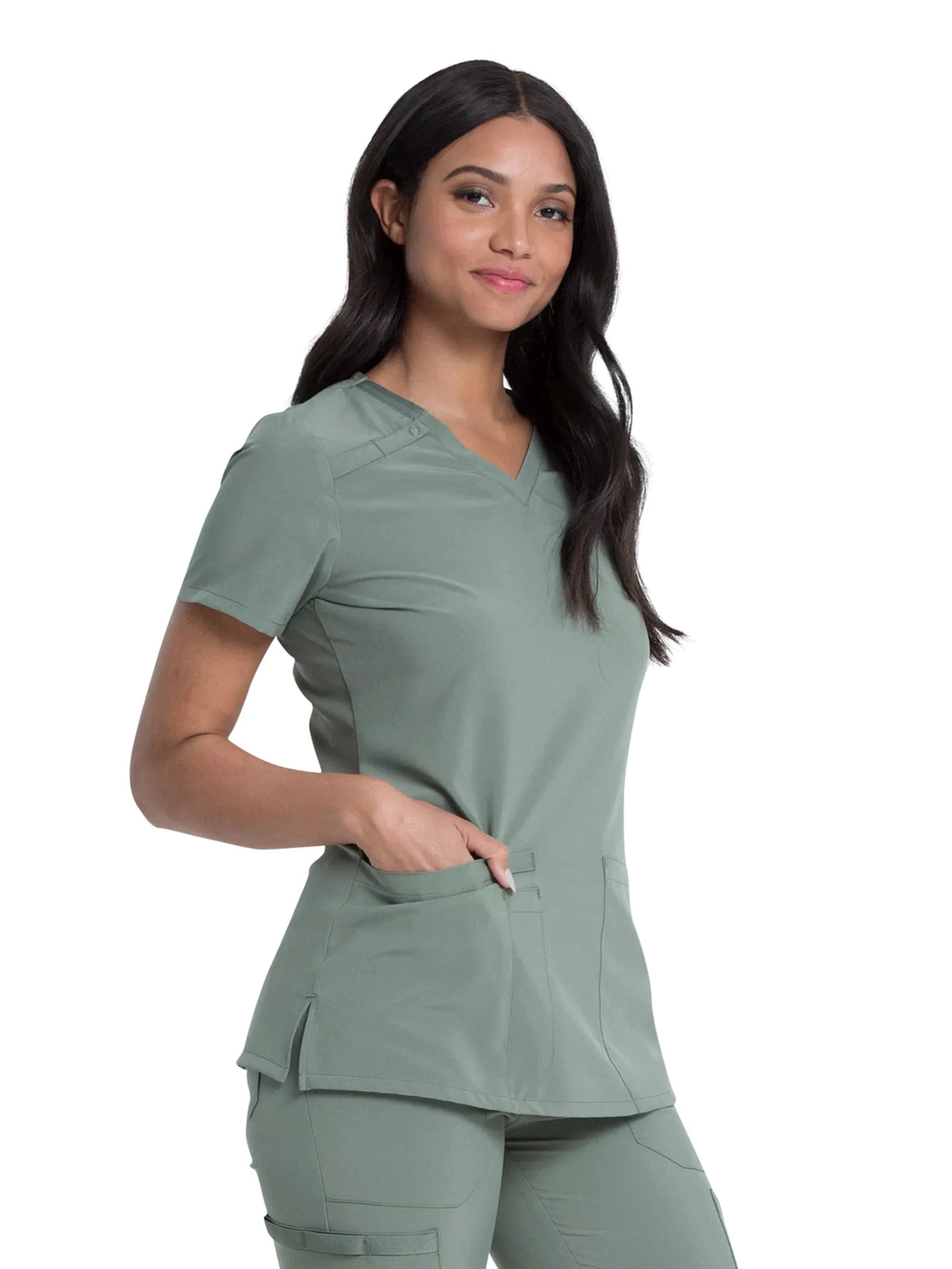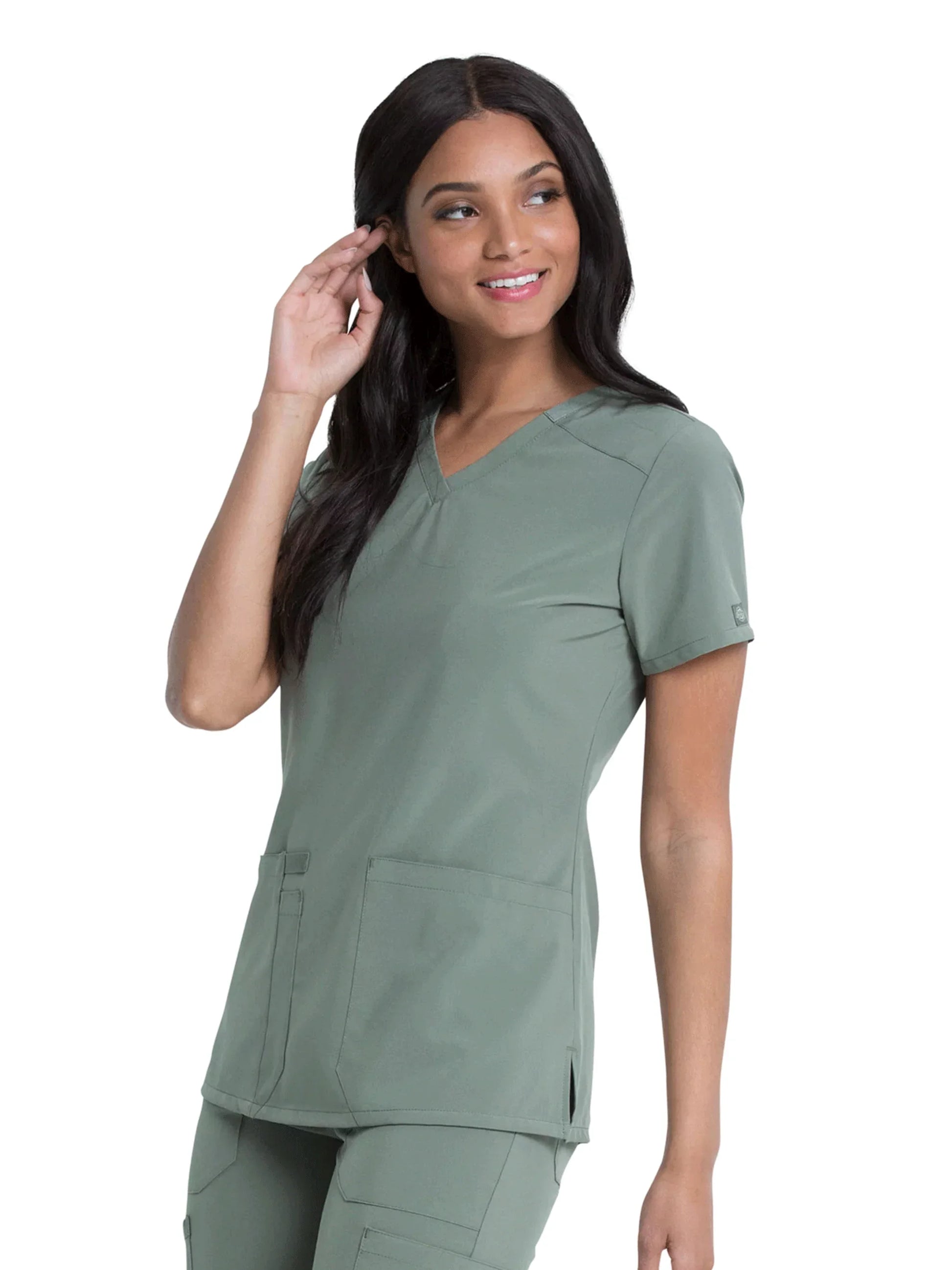 Signature details make the EDS Essentials by Dickies Women's V-Neck Solid Scrub Top your new favorite uniform. Easy care fabric is made to suit your busy lifestyle.