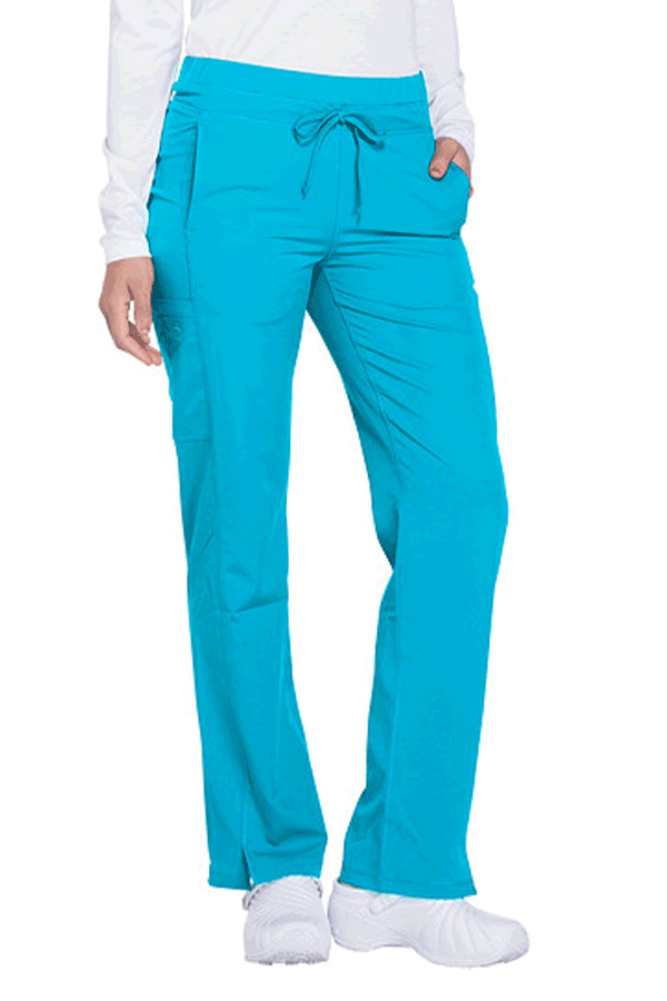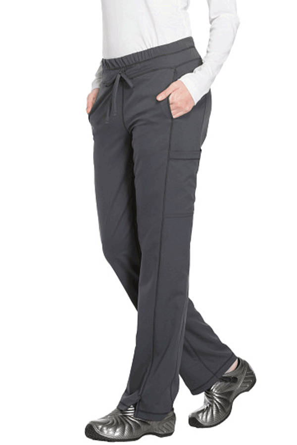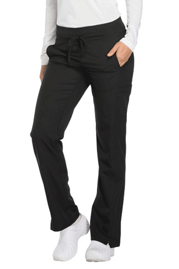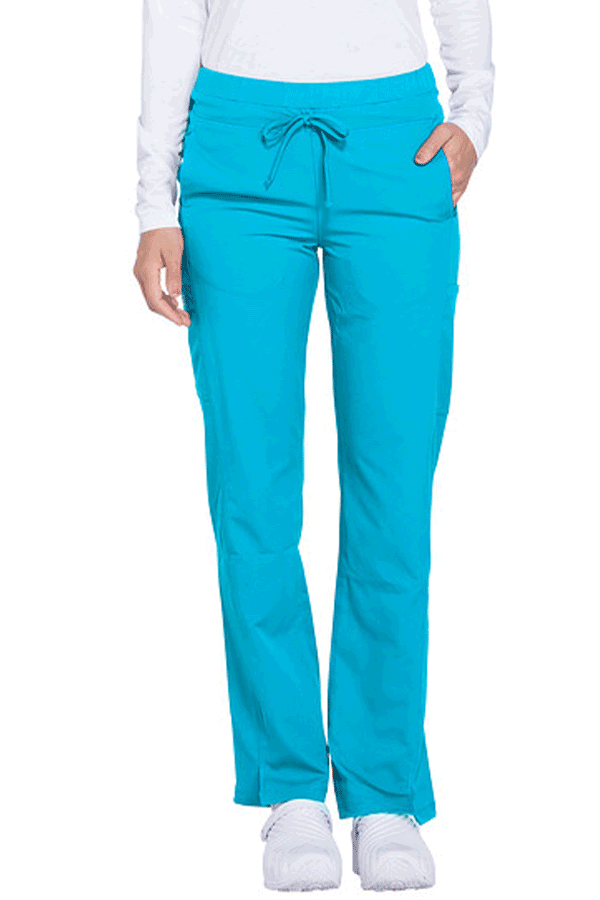 Womens pants feature comfortable elastic waistband and drawstring for adjustable fit. Front leg seams provide lengthening effect. Back yoke for fit and shaping. Petite sizes XXS to 2XL. (Underscrub sold separately.)