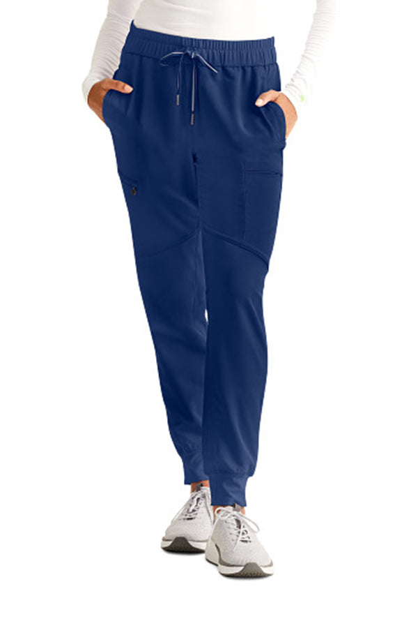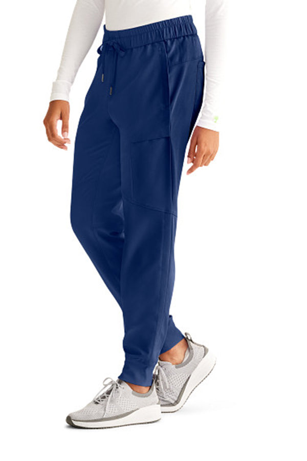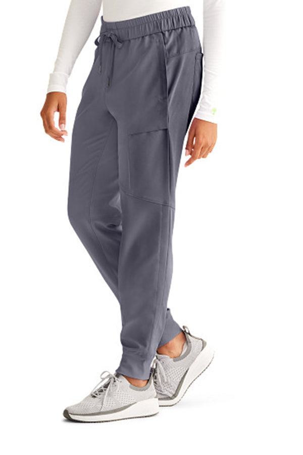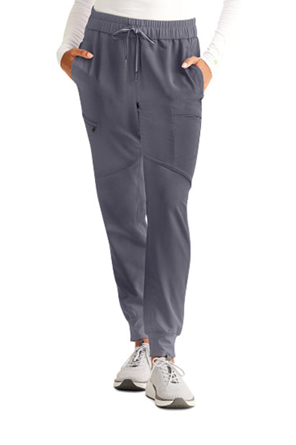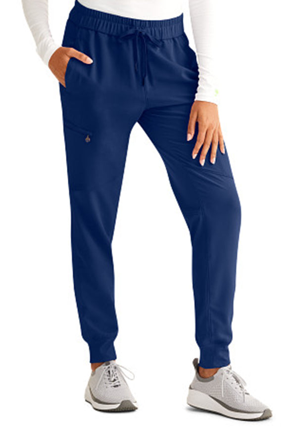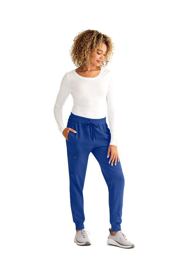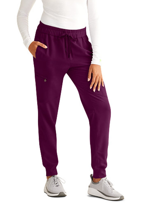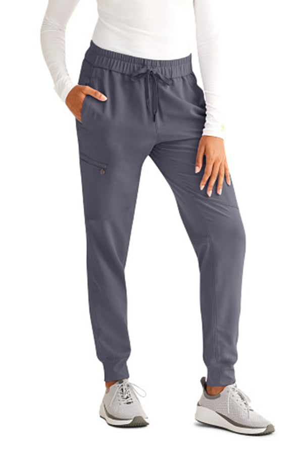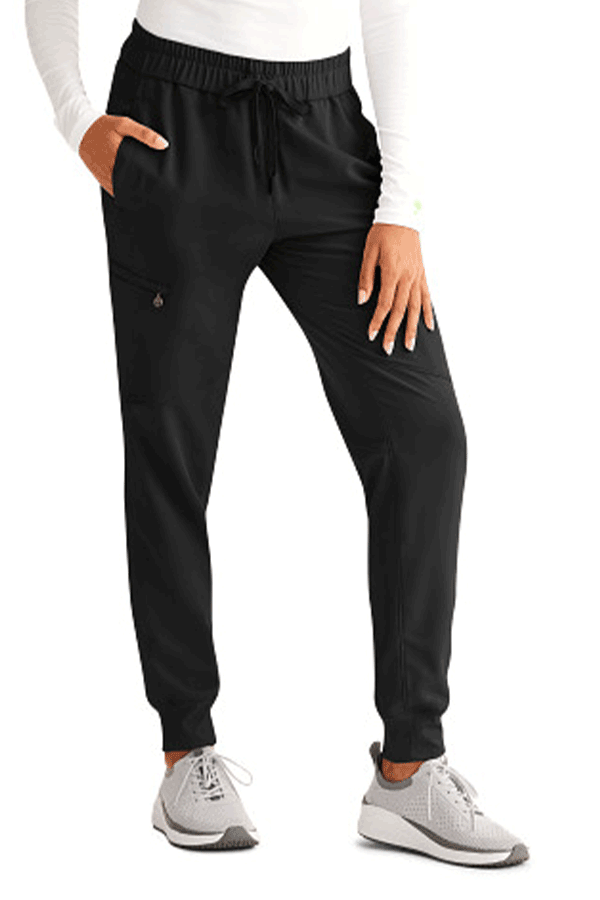 56% recycled polyester, 36% polyester, 8% spandex Diamond weave 4-way stretch Textured knit trim: 92% nylon, 8% spandex Moisture wicking